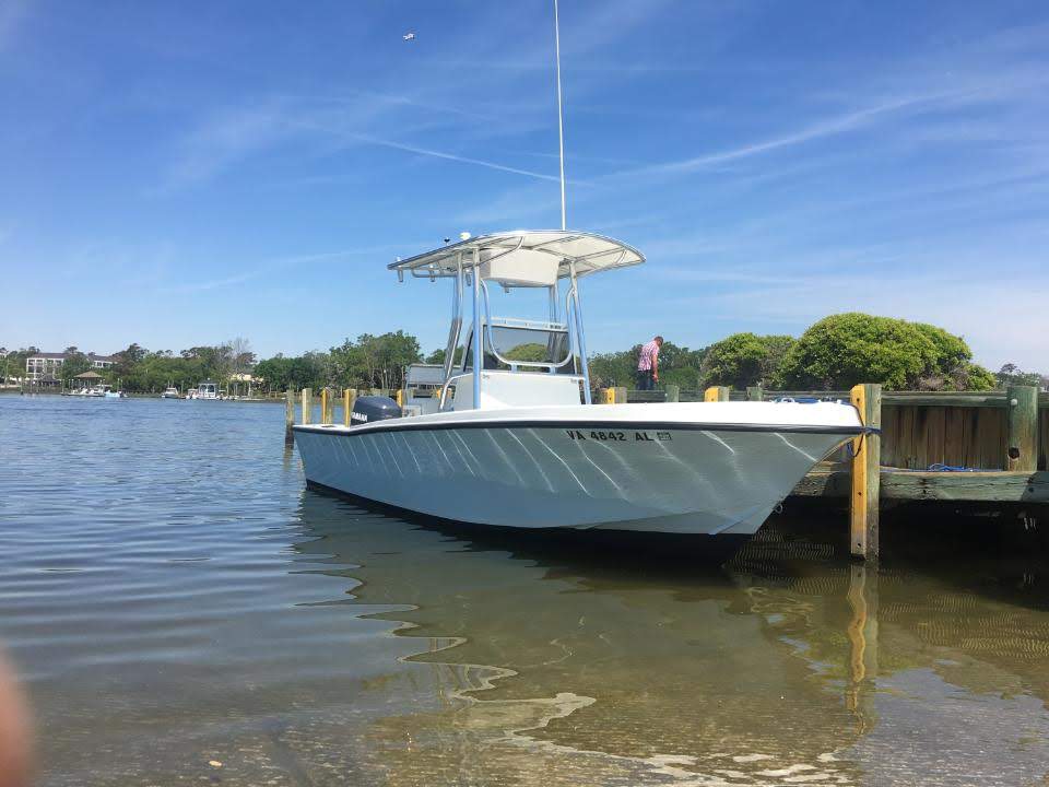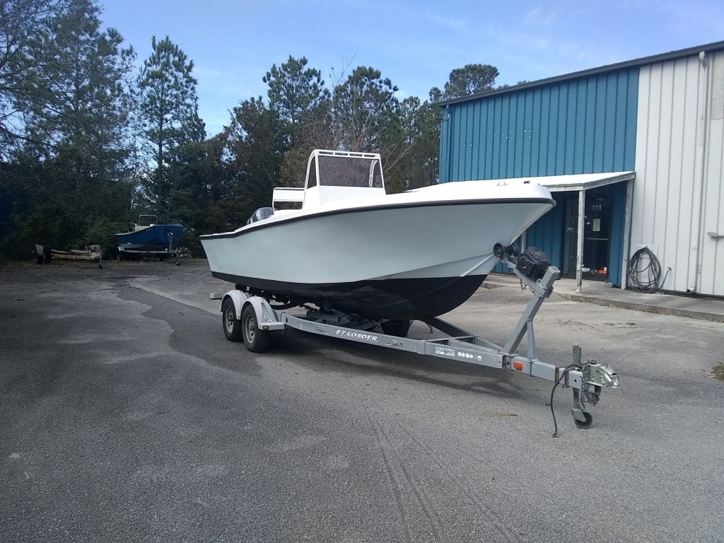 22 foot Mako. New transom. Modified console with new wiring and electrical panel. Baitwell well system installed. Ice blue Awlcraft on hullsides and Clipper white Awlcraft on the topsides. All new nonskid. Custom T-Top installed with custom fiberglass hardtop.