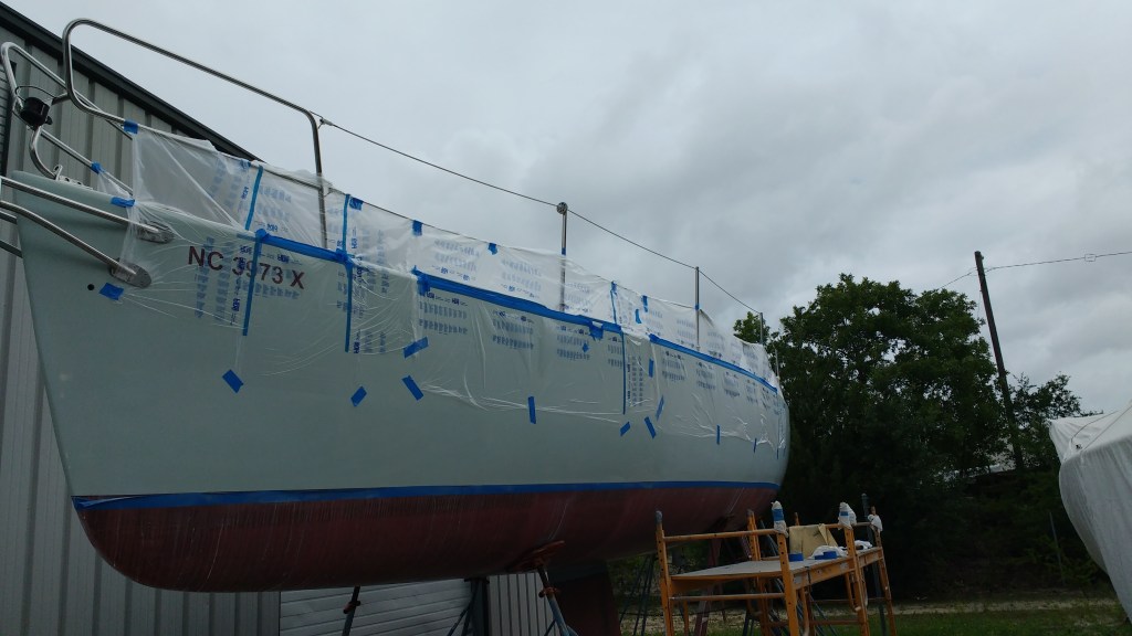 2002 Cape Fear 38 racer/cruiser. Topside gelcoat reconditioned. Keel to hull joint fiberglassed. Custom diesel fuel tank built and installed. Hardware resealing.